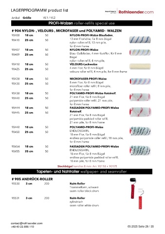 # 904 NYLON- , VELOURS-, MICROFASER und POLYAMID - WALZEN